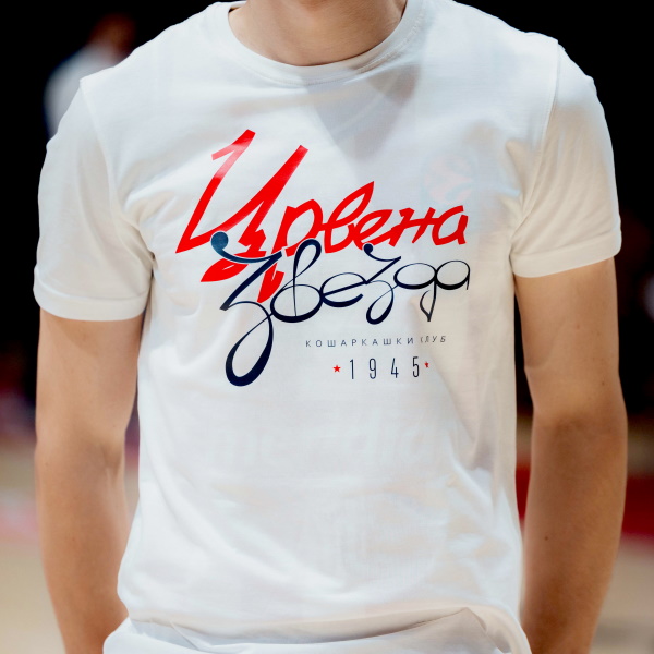 Na prednjoj strani majice, u profinjenom i modernom fontu, ponosno se ističe natpis „Црвена звезда“, dok se ispod, sa suptilnim balansom tradicije i stila, nalazi tekst „Кошаркашки клуб 1945“, uokviren dvema crvenim zvezdicama koje simbolizuju slavu i postojanost.